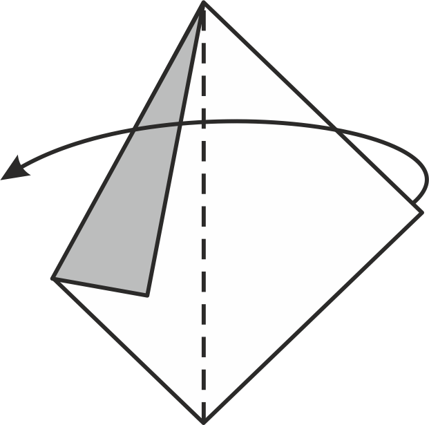 Start with your paper in a diamond shape. Fold the right side over to the left side, aligning the edges carefully. Press down firmly along the fold to create a sharp crease.