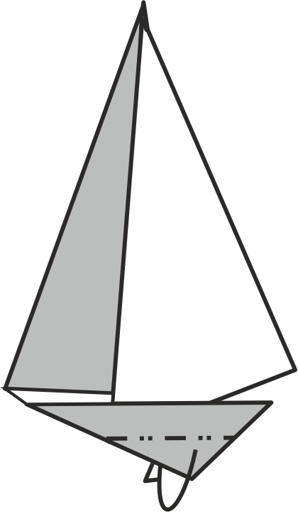 Fold the bottom edge upward behind the model following the dashed line. This hides extra paper and strengthens the sailboat.