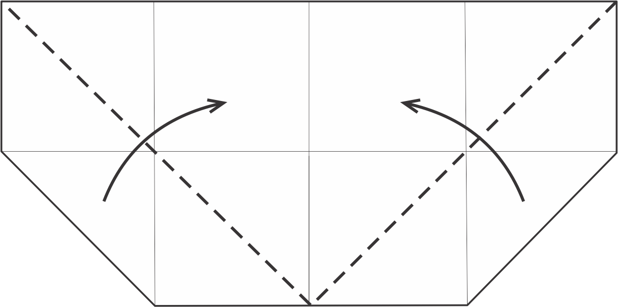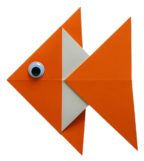 Dobla cada lado en diagonal hacia arriba siguiendo las líneas punteadas para formar el contorno del pez.