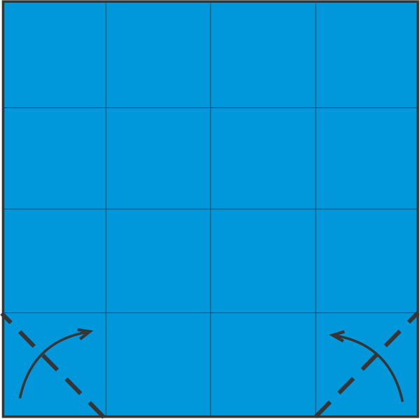 Dobla las esquinas inferiores hacia arriba en diagonal hasta la línea horizontal y desdóblalas. Estas marcas sirven de guía.