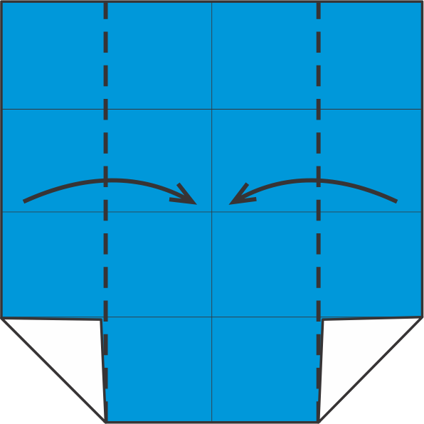Dobla los lados izquierdo y derecho hacia el centro vertical y desdóblalos. Estos pliegues preparan la forma del pez.