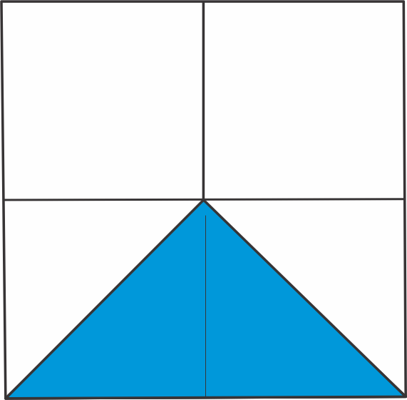 Dobla la esquina inferior hasta que toque el borde superior, usando como guía la línea central horizontal.