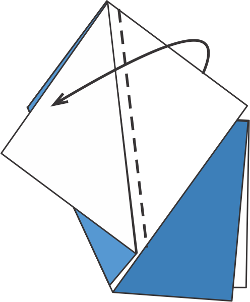 Dobla la esquina inferior izquierda en diagonal hacia la esquina superior derecha, siguiendo la línea punteada.