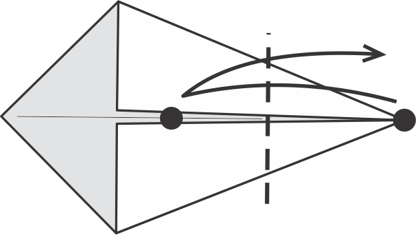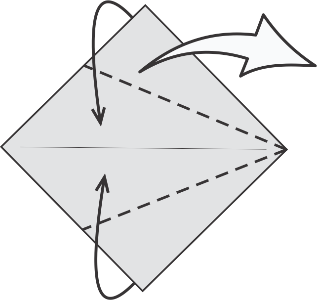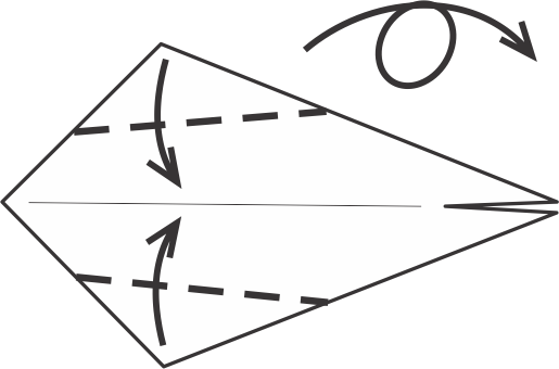 Lleva ambas esquinas (superior e inferior) hacia el centro, formando una figura de cometa.