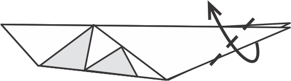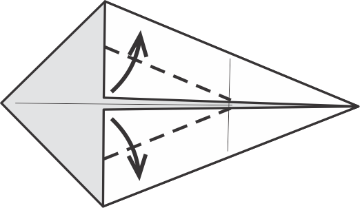 Dobla la parte puntiaguda hacia arriba y hacia un lado para formar la cola del tiburón, como se muestra.