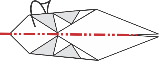 Usando la línea roja como guía, dobla la solapa superior hacia atrás para formar la aleta dorsal.
