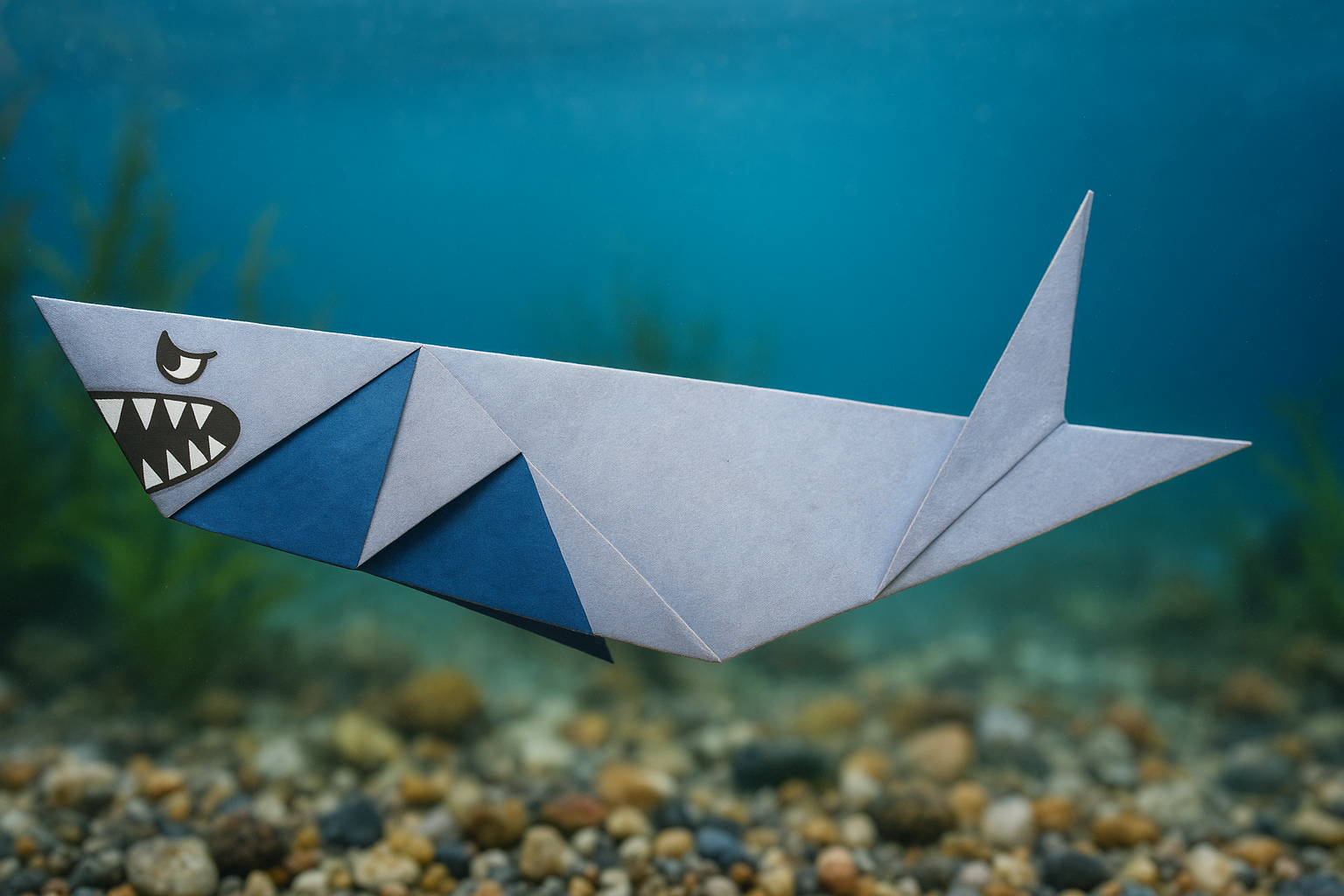 Este tiburón de origami es un proyecto divertido y perfecto para principiantes, ideal para niños y adultos. Con solo 9 pasos, puedes crear un tiburón con aspecto feroz usando pliegues básicos y un pequeño corte. Incluso puedes decorarlo con ojos y dientes. Para un mejor resultado, utiliza papel de colores a dos caras.