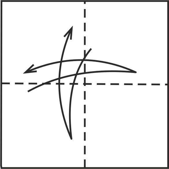 Coloca el papel cuadrado con el color hacia abajo. Dobla a la mitad de izquierda a derecha y desdobla para marcar una línea vertical. Luego dobla de abajo hacia arriba y desdobla para marcar una línea horizontal. Estas marcas serán las guías.