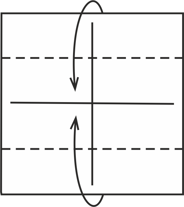 Con el papel en forma de rectángulo, dobla el borde superior hacia la línea central. Repite con el borde inferior llevándolo al mismo centro. Mantén ambos pliegues parejos.