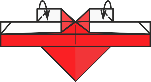 A la izquierda y a la derecha, dobla los pequeños rectángulos superiores hacia abajo siguiendo las líneas en ángulo hasta que toquen el borde superior del centro. Esto forma ángulos limpios junto a la base de las alas.