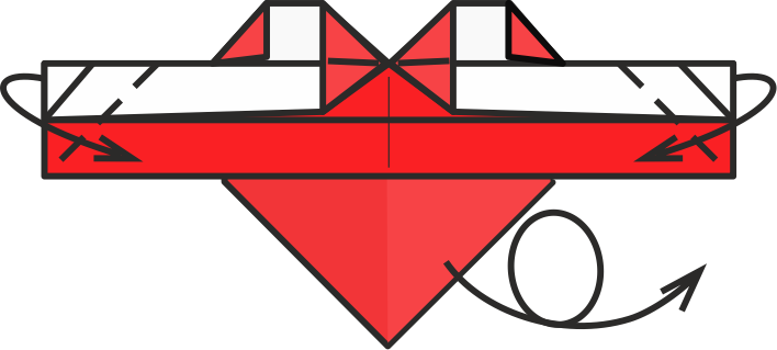 En ambos extremos, dobla las esquinas exteriores hacia adentro siguiendo las diagonales para crear puntas en las alas. Cuando coincidan, gira el modelo para el resultado final.