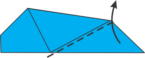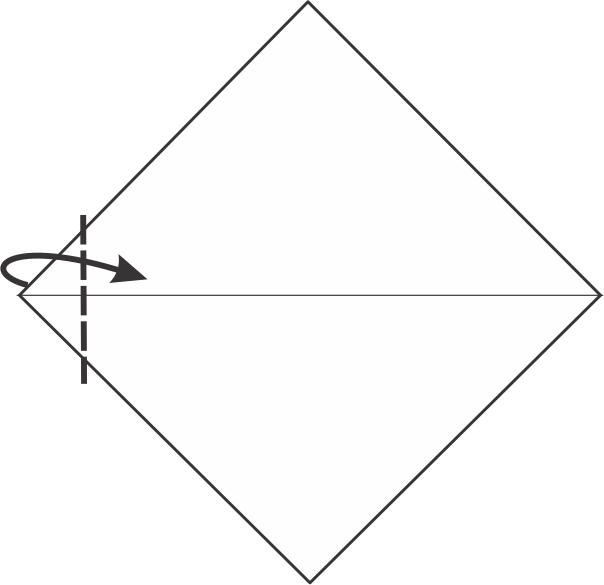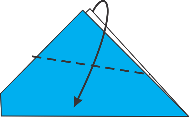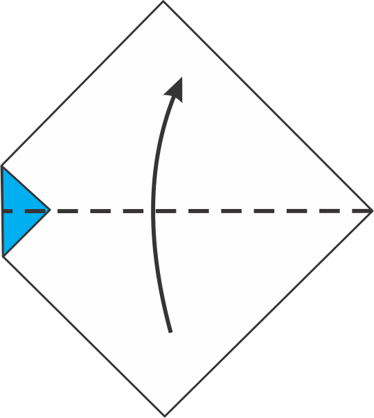 Con el triángulo apuntando hacia arriba, observa el lado izquierdo. Dobla la esquina izquierda hacia el centro siguiendo la línea de puntos.