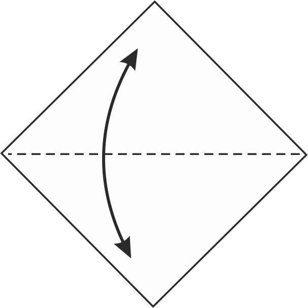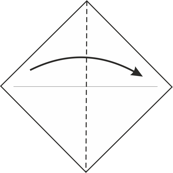 Coloca el papel en forma de diamante, dobla la esquina superior hacia la esquina inferior, marca el pliegue y luego desdóblalo para marcar la línea central.
