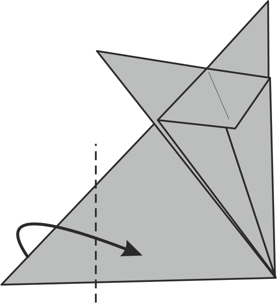 Dobla la pequeña punta inferior hacia arriba para formar la cola del zorrito usando la línea punteada como guía.