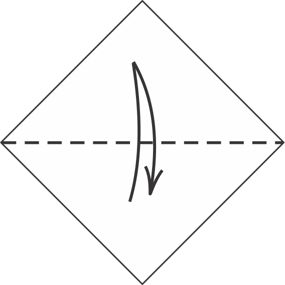 Coloca el papel con el color hacia abajo en forma de diamante. Dobla la esquina superior hacia la inferior y desdóblalo para crear una línea central.