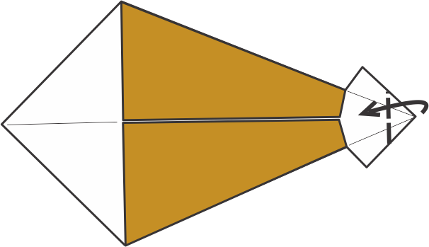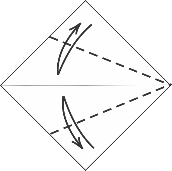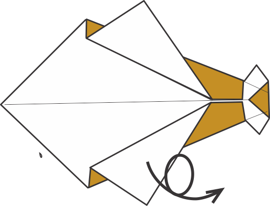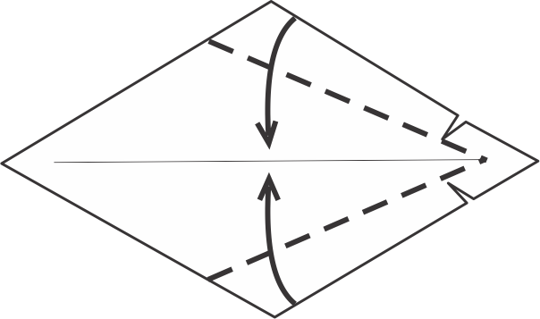 Dobla las solapas superior e inferior en diagonal hacia afuera para darle forma al cuerpo del pez.
