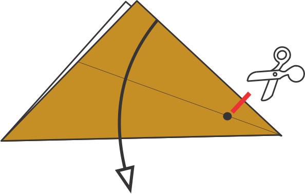 Dobla la esquina inferior hacia la superior formando un triángulo, siguiendo la línea central.