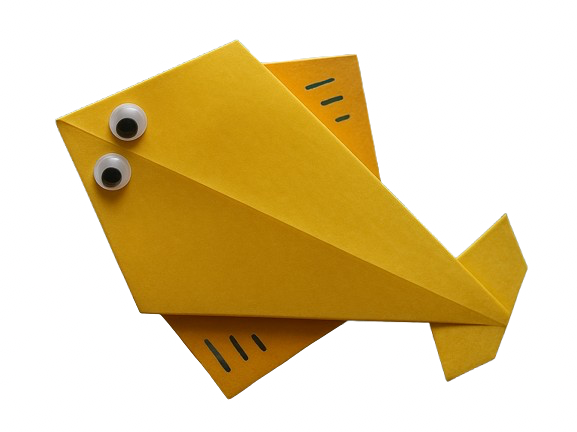 Agrega ojos y dibuja líneas o decoraciones en las aletas para completar tu pez lenguado de origami.